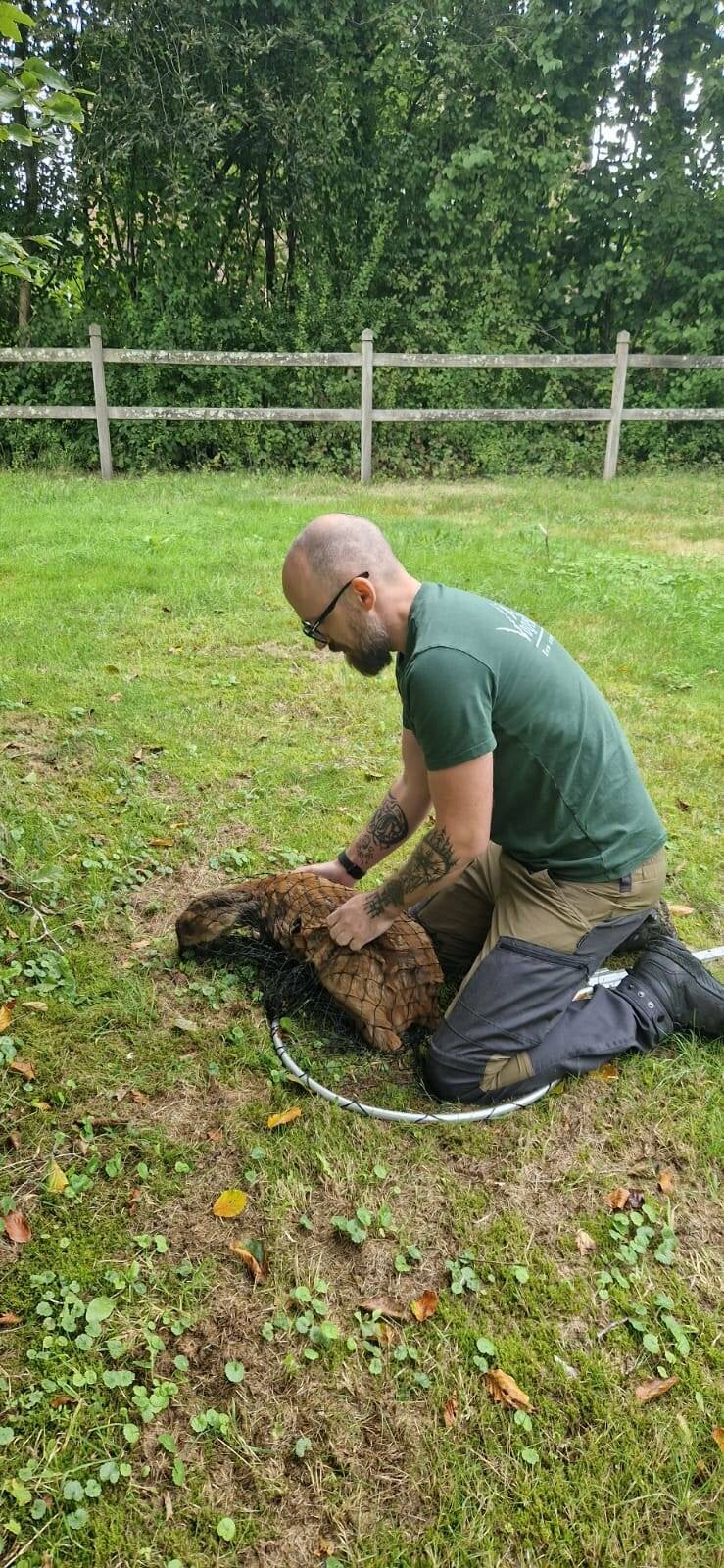 REE MET BIJTWONDE : Enkele dagen geleden rukte een chauffeur van ons WTT uit om een ree op te gaan halen. Een melder uit Oud-Turnhout had in een paardenweide een ree zien liggen die niet wegvluchtte. Onze chauffeur had niet veel moeite om het dier te vangen en over te brengen naar het VOC, maar de ree heeft het niet gehaald en is daar overleden. Bij onderzoek bleek dat de bijtwonde die het dier had, zo diep was dat een long geperforeerd was. Laat dit nog maar eens een oproep zijn om honden steeds aan de leiband te houden, want bijna met zekerheid kan gesteld worden dat deze ree gebeten werd door een loslopende hond.