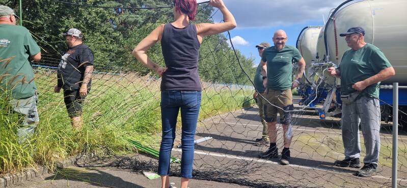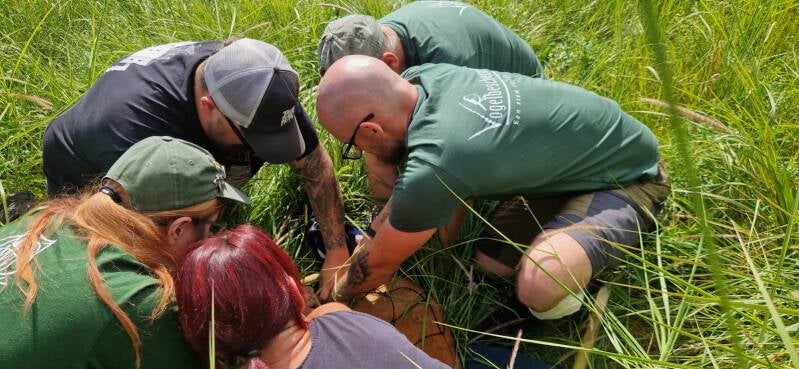 HET VANGEN VAN EEN (gezonde) REE. In de post hier lees je over de ree die we gingen vangen op een bedrijventerrein in Mol. Het dier geraakte daar niet uit weg en zat er al 9dagen 'opgesloten'. Hier zie je enkele foto's van hoe we te werk gingen. Eerst de ree lokaliseren, dan een strategische plaats zoeken om het vangnet op te stellen en dan de ree opjagen en naar het net drijven. Zodra het net over de ree is gevallen, zo snel mogelijk de ogen bedekken, de ree losmaken uit het net, in de bak stoppen en weer vrij laten. Dat alles heeft amper een kwartier geduurd nadat we wisten waar de ree zich schuil hield. De vrijlating kan je zien op het filmpje in de vorige post.