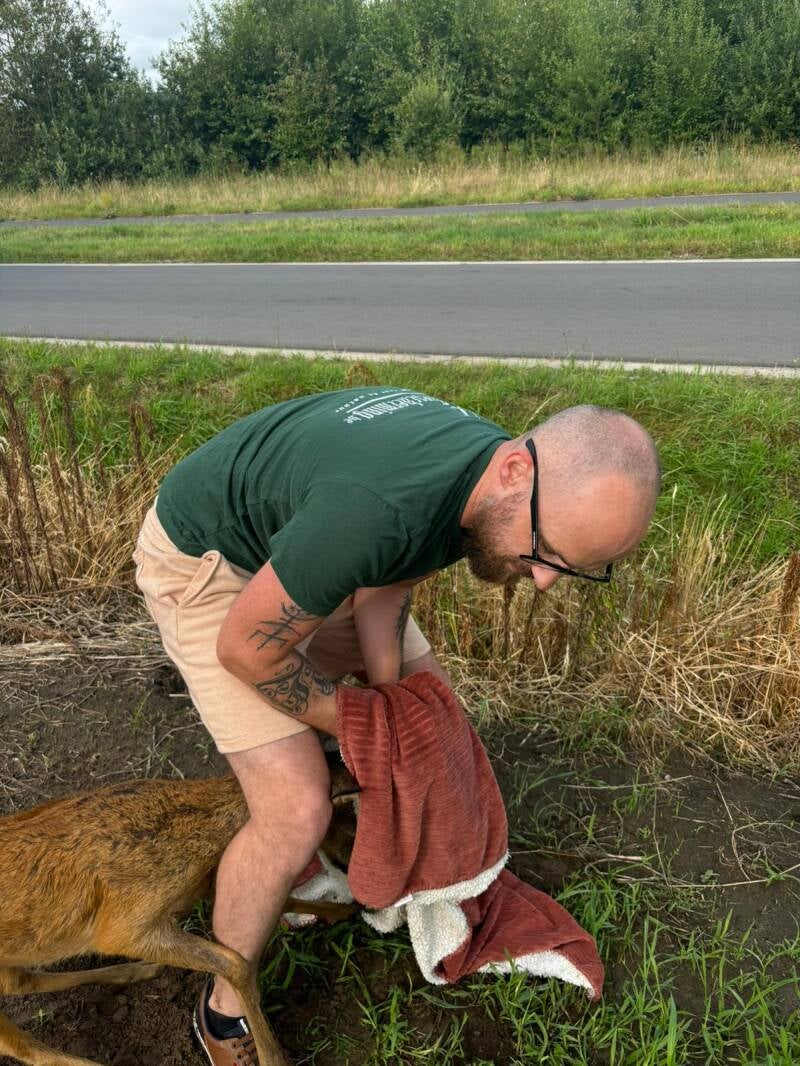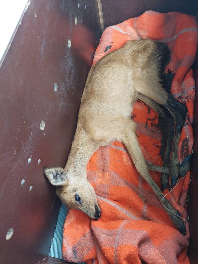 Reeën : Reeën doen het goed in onze natuur. Je ziet ze de laatste jaren overal opduiken. Geen wonder dat er dan ook meer oproepen binnenlopen bij het WTT voor zieke of gewonde reeën. Zowel gisteren (reegeit) als vandaag (reebok) werd er door een chauffeur van ons team een ree opgehaald. De reegeit was ziek en had zware diarree. Blijkbaar waren in dat natuurgebied nog meer reeën met diarree. De reebok had snijwonden en was verzwakt. Mogelijk had hij ergens in een draad verward gezeten of was hij aangereden. Voor het transport worden de dieren geblinddoekt zodat ze rustig worden, geen prikkels binnenkrijgen en dus minder stress ervaren. Beiden werden naar VOC Neteland in Herenthout overgebracht voor verzorging.