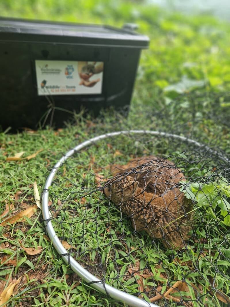 Toch bleef de reekits de hele dag zichtbaar liggen, zonder zich te verplaatsen of te verschuilen, wat wel typisch gedrag zou zijn voor een gezond dier. In de namiddag, toen er nog steeds geen teken van de moeder was, contacteerde de eigenaar het opvangcentrum opnieuw. Een vrijwilliger van het Wildlife Taxi Team ging ter plaatse om de situatie te evalueren.