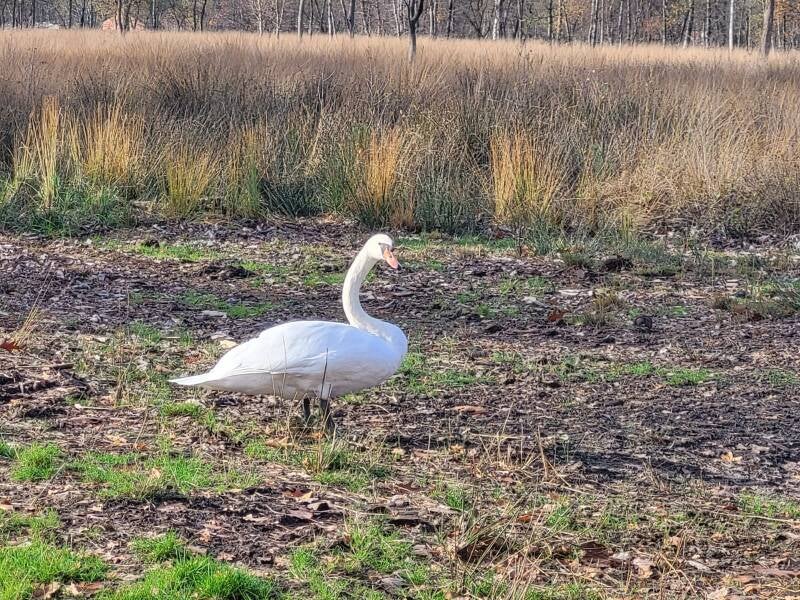 Vanmorgen kregen we een oproep van een alerte Natuurpunter: in het Vennengebied van Turnhout-Merksplas zat een knobbelzwaan op een opvallend vreemde plek — en liet ze zich bovendien zeer makkelijk benaderen. Dat is nooit een goed teken.